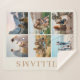 Crea tu propia manta personalizada de collage de fotos. Añada sus propias 6 fotos y un monograma o texto personalizado personalizado a este sencillo diseño de manta moderna.
