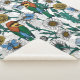 Patrón sin fisuras de vectores dibujados a mano con aves que comen abejas y mariposas azules comunes en flores de margarita