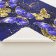 Composición de lujosas mariposas de zafiro y joyas de oro sobre fondo de textura azul.