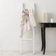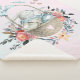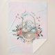 Una manta de sherpa con un ilustracion creado con acuarelas. Un lindo conejo con un vestido azul sentado en una canasta rodeada de sus huevos. Las mariposas revolotean alrededor de la cesta decorada con un florido ramo.