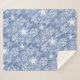 Grandes y pequeños copos de nieve blancos contra un fondo de color azul claro.