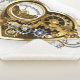 Corazón mecánico, volumétrico, de vapor punk con manómetro de presión, acero y engranajes dorados sobre fondo blanco. Estilo Steampunk.