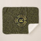 Usted no encontrará una manera más elegante de mantenerse caliente que esto Rugir-Año 20-inspirado, manta exclusiva del sherpa. El ajuste para los derechos, el diseño incluye una guirnalda elegante del laurel y el adorno de la corona en falso oro (impreso) y negro, termina con su monograma personalizado. Un modelo de cristal roto el | geométrico de la quebrado-cáscara de huevo termina este diseño del art déco 20s. Complete la plantilla para añadir su monograma de encargo.