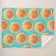 Un patrón de rodajas naranjas frescas y jugosas en tonos profundos de naranja de mandarina y naranja rojo, con una textura acuarela para darle ese aspecto recién cortado. Están colocadas sobre un fondo azul brillante para dar un aire luminoso y veraniego.