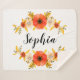 Funda sherpa con flores de color coral sobre fondo blanco y texto de personalizable.
