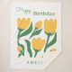 Celebra un cumpleaños especial con este elegante diseño de tulipanes dibujados a mano. Con un estilo fresco y minimalista escandinavo, estas vibrantes flores amarillas y tipografía verde moderna aportan un ambiente botánico alegre a cualquier regalo.