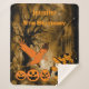 Una linda manta para el chica de cumpleaños en Halloween. Perfecto para un regalo, este diseño presenta una adorable bruja vagabunda con sus amigables compañeros calabazas Jack O, cuervos y telarañas con el fondo de un árbol oscuro. El texto se puede personalizar fácilmente.
