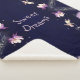 Dulces sueños, azul oscuro y lavanda. Flores, leones y flores voladoras.