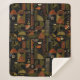 Sophisticated mid-century geometric pattern blanket featuring layered circles, arches, triangles, and rectangles in forest green, burnt orange, ochre, and cream on a black background. Rich textures and retro-modern shapes create a bold design ideal for Bauhaus lovers, vintage décor fans, and anyone drawn to moody modern style.