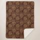 Un damasco de efecto lujoso, de punto dorado sobre una variación de un patrón de Siete Tesoros en marrón oscuro y cacao,