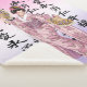 fondo rosa degradado con violeta y mujer japonesa con vestido tradicional.