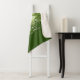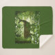 Una manta de sherpa de tamaño medio con una foto de un ciervo en el bosque sobre un fondo verde.