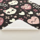 Este patrón de gatos kawaii, corazones y flores tiene una variedad de caras adorables con forma de corazón sobre un fondo negro, adornadas con flores y hojas pequeñas. La manta es un regalo perfecto para San Valentín o cumpleaños.