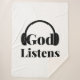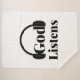 Esta manta muestra las palabras "Dios escucha" en una letra audaz con letras negras mostrando un conjunto de auriculares sobre la frase que Dios escucha en este estilo y tema basado en la fe. Esta manta presenta una imagen vívida en un lado y el Sherpa más suave disponible en el reverso hecho de poliéster 100% y mink impreso con soporte de sherpa ultra suave.