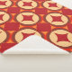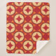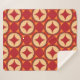 Patrón artístico sin fisuras, con formas geométricas rojas, naranjas y beige que forman motivos interconectados entre sí circulares y estrellas.