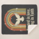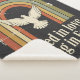 Un colorido arco iris retro y un diseño de fe de paloma que muestra el mensaje 'Enraizado en la fe, alzándose en el amor'