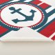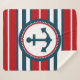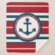 Diseño náutico con decoración de ancla en forma redonda sobre fondo rayado rojo, azul y blanco