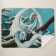 Pequeño dragón blanco sentado en un árbol verde que disfruta de un día de invierno.