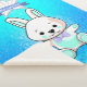 Dulce Funny Sonriente Nombre Bunny Personalize - un diseño gráfico con un fondo acuático vívido, un conejito gracioso, feliz y sonriente en tonos azules, y un maravilloso arco azul. El diseño se puede personalizar con su propio nombre, filtros y texto.