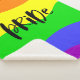 Esta obra de arte muestra el estado de Texas formado por un arcoiris colorido.