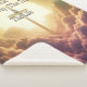 Cruz dorada entre nubes esponjosas con diseño de tipografía.