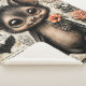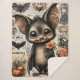 Encanto de la cripta: La flor bajo la manta del Sherpa de la luna Una criatura de ojos anchos se levanta erguida en un crepúsculo collage de huesos y flores, agarrando una flor naranja como una ofrenda secreta. Sus orejas sobredimensionadas y pequeños colmillos dan a entender que hay daños nocturnos, mientras que el fondo —grabado con cráneos, rosas y escritura arcana— se siente como una página olvidada de un libro mayor embrujado. Palabras como HAUNT, PASPROT y CRYPT CHARM se deslizan a través de la neblina pergamino, conjurando un mundo donde la cortesía y el entino descompuesto. Es un retrato de ternura gótica, donde hasta la espeluznante se atreve a florecer.