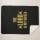 Esta manta presenta una letra impresa en negrita de antonio con letras de colores dorados que muestran la frase bíblica "El Señor es mi Escudo" con un icono de espada y escudo a cada lado en este tema bíblico del dicho. Esta manta presenta una imagen vívida en un lado y el Sherpa más suave disponible en el reverso hecho de poliéster 100% y mink impreso con soporte de sherpa ultra suave.
