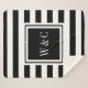 Manta Sherpa Elegante Monograma moderno franja blanca negra