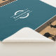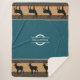 Esta cálida y acogedora manta sherpa se muestra en un rico azul verde azulado con chocolate marrón, tostado, carbón vegetal y borde impreso gris en cada extremo. Texto de piedra amarilla en el centro con el logo y varios cordones caminando a través de las fronteras completan el aspecto. Personalizar esta manta o compra como se muestra. Creado para coordinar con la almohada