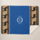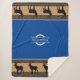 Esta cálida y acogedora manta Sherpa se muestra en un azul real con chocolate marrón, tostado, carbón vegetal y borde impreso gris en cada extremo. Texto de piedra amarilla en el centro con el logo y varios cordones caminando a través de las fronteras completan el aspecto. Personalizar esta manta o compra como se muestra. Creado para coordinar con la almohada