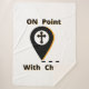 Esta manta tiene las palabras "En el punto con Cristo" en una letra en negrita con letras negras en la sombra amarilla más una cruz dentro de un mapa de ubicación con este tema de cita basado en la fe. Esta manta presenta una imagen vívida en un lado y el Sherpa más suave disponible en el reverso hecho de poliéster 100% y mink impreso con soporte de sherpa ultra suave.