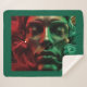 Divine Essence" irradia fuerza y serenidad con una cara metálica bañada en tonos rojos, verdes y dorados. Rodeado de humo, simboliza orgullo cultural, resiliencia y belleza intemporal