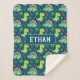 Diseño estegosauro y t-rex de color de agua sobre un fondo azul oscuro. Esta bonita manta de dinosaurio se personaliza fácilmente con el texto de su elección.