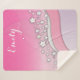 Hermoso diseño personalizado de manta Sherpa con estrellas plateadas sobre un fondo rosa y plateado. El texto es totalmente personalizable.