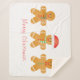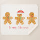Ilustracion lindo de tres hombres de jengibre vestidos con ropa de fiesta. Sombrero de Papá Noel, pañuelos de invierno y bonitos botones de colores alegran las vacaciones en este diseño. Los hombres de pan de jengibre son esenciales para la temporada de Navidades y este diseño es perfecto para alegrar esta temporada.