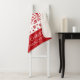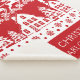 Feliz Navidad Santa Invierno Copos de nieve Nombre personalizado Sherpa Blanket presenta a Santa Claus con su reno volando sobre casas cubiertas de nieve con el texto "Feliz Navidad" en escritura moderna de caligrafía y tu nombre personalizado debajo en blanco sobre un fondo rojo. Personalice editando el texto en los cuadros de texto proporcionados. Perfecto para regalos de Navidades. Diseñado por ©Evco Holidays www.zazzle.com/store/evcoholidays