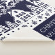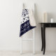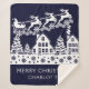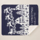 Feliz Navidad Santa Invierno Copos de nieve Nombre personalizado Sherpa Blanket presenta a Santa Claus con su reno volando sobre casas cubiertas de nieve con el texto "Feliz Navidad" en escritura moderna de caligrafía y tu nombre personalizado debajo en blanco sobre un fondo azul. Personalice editando el texto en los cuadros de texto proporcionados. Perfecto para regalos de Navidades. Diseñado por ©Evco Holidays www.zazzle.com/store/evcoholidays
