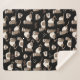 hurones dibujados a mano, xoxo y corazones patrón manta sherpa, fondo negro.
