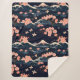 Relájese cómodamente con esta manta de inspiración japonesa que presenta un estilo tradicional de flores de cerezo sakura. Flores suaves de color rosa se funden con un fondo azul marino profundo, complementado con delicados motivos ondulados y pescado koi para una estética elegante y apacible.