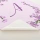 Una rama de flores de cerezo rosa bonito en un fondo rosado adorna las esquinas de esta manta.