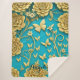 Manta Sherpa Flores Teal y Doradas con Nombre Personalizado