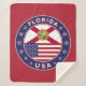 Insignia de Florida con bandera de Florida y bandera de los colores de EEUU, forma redondeada. Emblema de Florida. Sello de Florida. Colección de Estados Unidos.