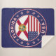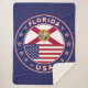 Insignia de Florida con bandera de Florida y bandera de los colores de EEUU, forma redondeada. Emblema de Florida. Sello de Florida. Colección de Estados Unidos.