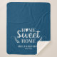 Una acogedora manta sherpa con las palabras Hogar dulce Hogar y su nombre y fecha de boda. Personalice esta manta azul marino y blanco para un hermoso regalo boda. Hay otros colores disponibles. Diseñado para ti por Blackberry Boulevard.