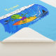 Nuestro divertido lagarto surfeando con tiburones. Añade tu propio texto para hacerlo especial.