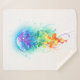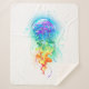 Grandes medusas de azulejo brillantes, de dibujos artísticos, con largos tentáculos en blanco, pintadas con fondo multicolor de acuarela. Mariscas arcoiris.