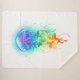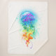 Grandes medusas de azulejo brillantes, de dibujos artísticos, con largos tentáculos en blanco, pintadas con fondo multicolor de acuarela. Mariscas arcoiris.