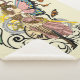 Un hada rubia de Steampunk con alas rosa y azul. El hada lleva un atuendo lindo con sombrero de punta, medias corsé y rayadas, mariposas, reloj, engranajes y diseño tribal todo en un fondo amarillo claro