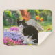 Manta Sherpa Gato blanco negro lindo en un jardín de flores col