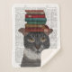 Manta Sherpa Gato gris con libros en la cabeza